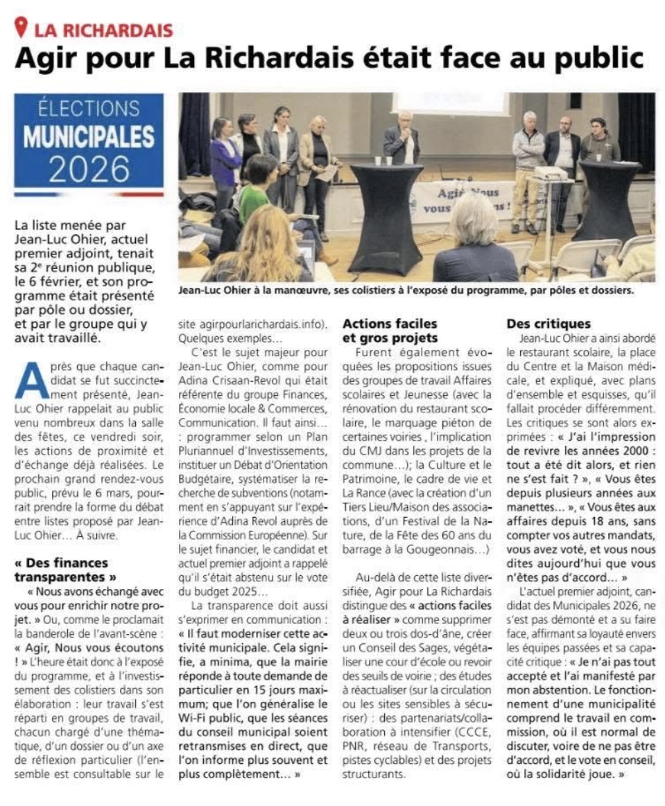 M. Hugues Brault aura mis 37 jours pour prendre une décision : celle de refuser le débat démocratique que j'avais proposé le 19 janvier dernier lors de notre première réunion publique. À l’inverse, Nicolas Guivarc’h, tête de liste de Voies Communes, a répondu favorablement. Je tiens à le remercier pour son sens du dialogue.